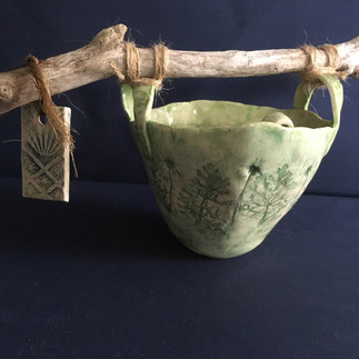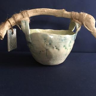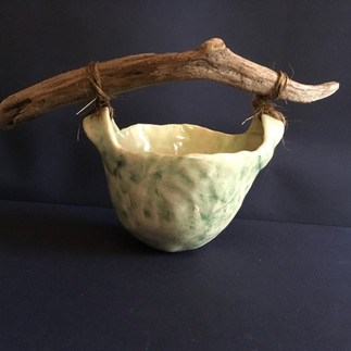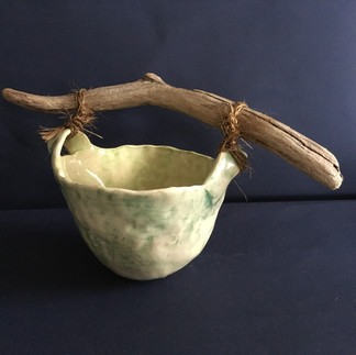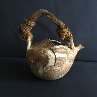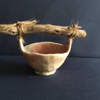 Part of my PTSD recovery is trying to walk daily. I used to be very active. But a serious physical attack in the classroom left me with ongoing pain and problems. My routine is to walk and collect material I find interesting and use in a pinch pot. Each pot has a different story.